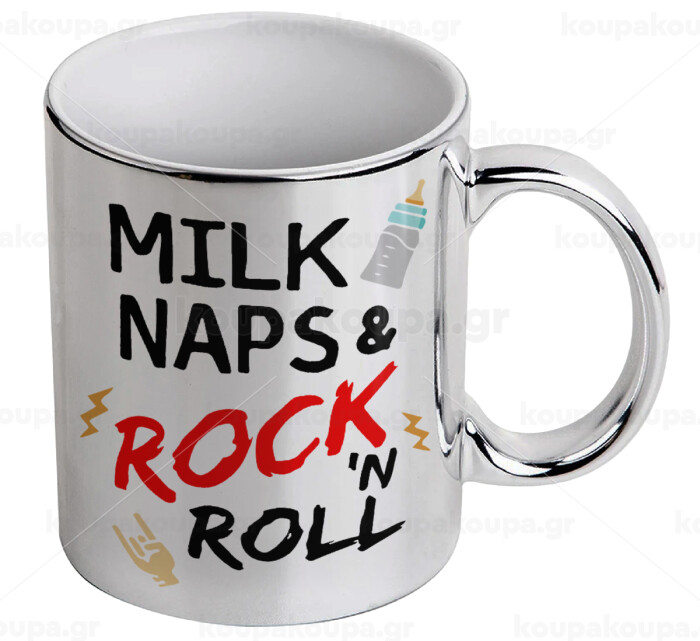 milk naps and Rock n' Roll, Mug ceramic, silver mirror, 330ml