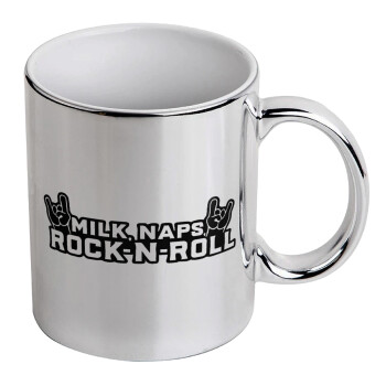 Milk, Naps, Rock N Roll, Mug ceramic, silver mirror, 330ml