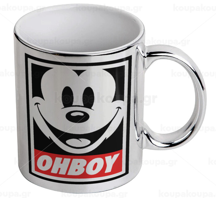 Oh boy μίκυ, Mug ceramic, silver mirror, 330ml