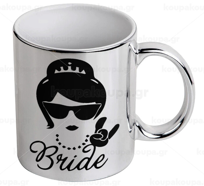 Bride hands, Mug ceramic, silver mirror, 330ml