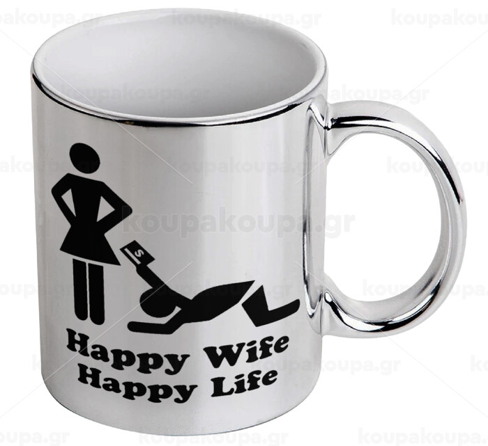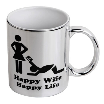 Happy Wife, Happy Life, Mug ceramic, silver mirror, 330ml