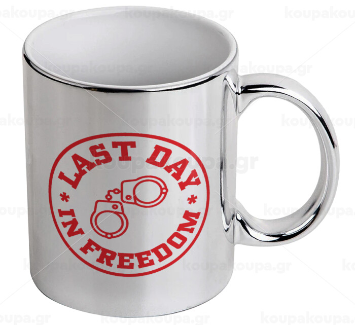 Last day freedom, Mug ceramic, silver mirror, 330ml