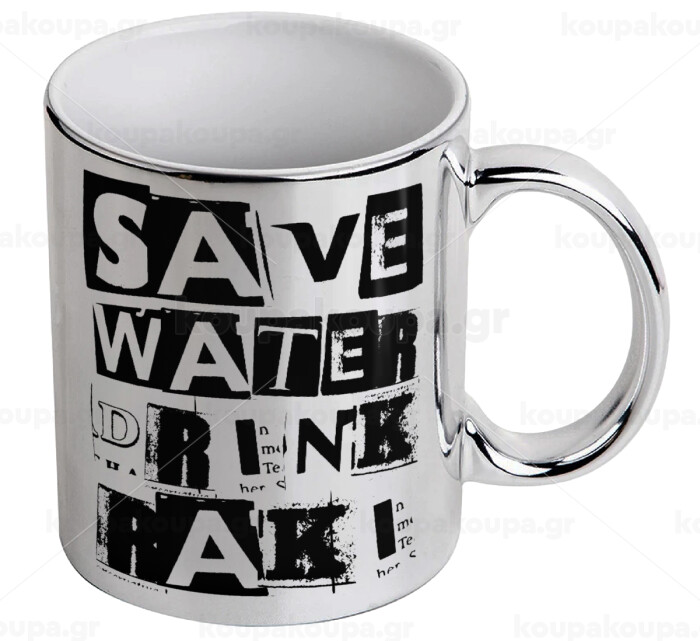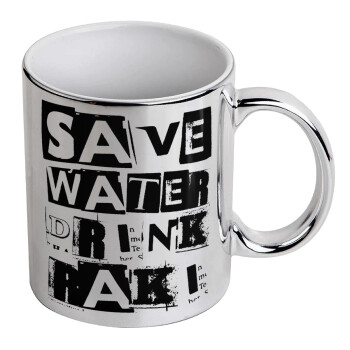 Save Water, Drink RAKI, Mug ceramic, silver mirror, 330ml