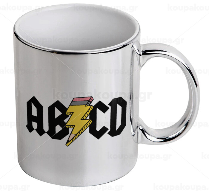 ABCD, Mug ceramic, silver mirror, 330ml