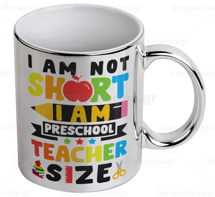 I Am Not Short I Am Preschool Teacher Size, Mug ceramic, silver mirror, 330ml