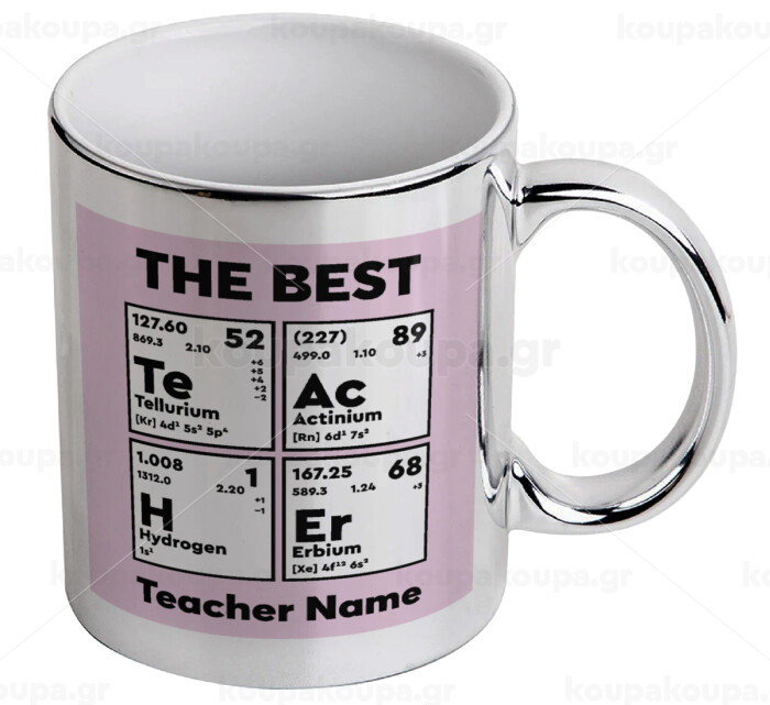 THE BEST Teacher chemical symbols, Mug ceramic, silver mirror, 330ml