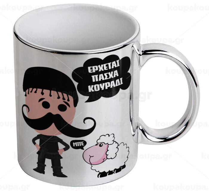 Κρητικός "Έρχεται Πάσχα κουράδι", Mug ceramic, silver mirror, 330ml