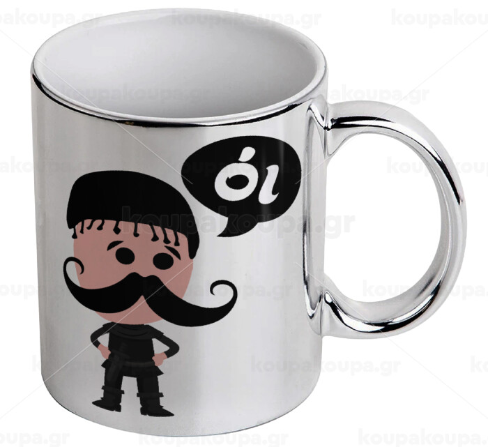Κρητικός "Οι", Mug ceramic, silver mirror, 330ml