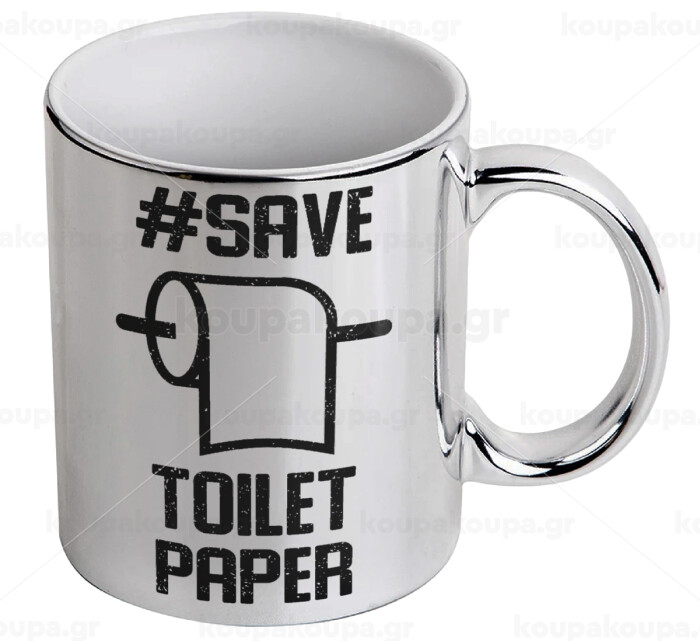 Save toilet Paper, Mug ceramic, silver mirror, 330ml
