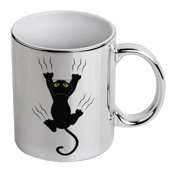 cat grabbing, Mug ceramic, silver mirror, 330ml