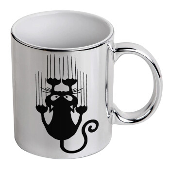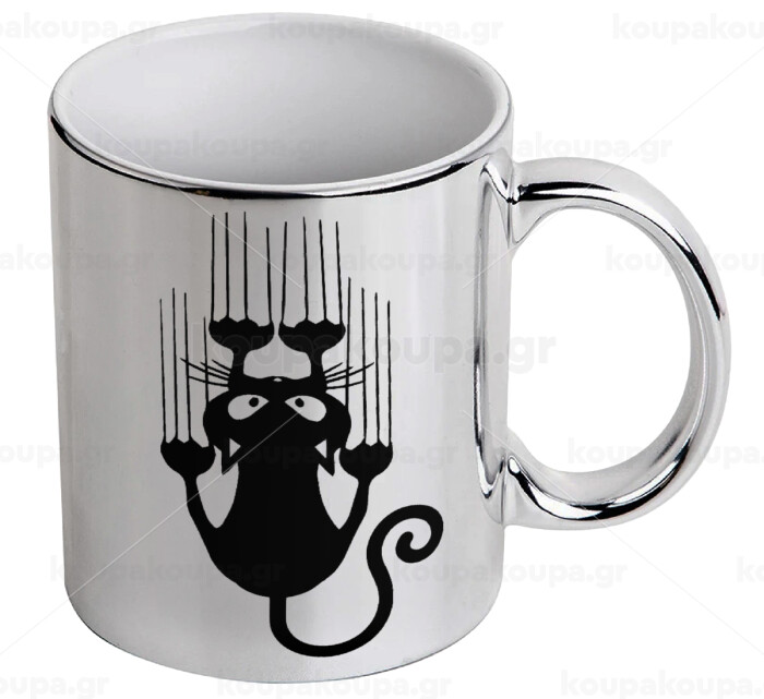 Cat scratching, Mug ceramic, silver mirror, 330ml