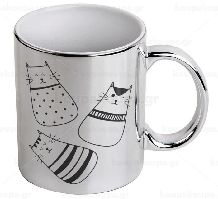 Cute cats, Mug ceramic, silver mirror, 330ml