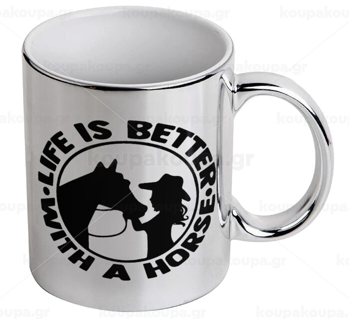 Life is Better with a Horse, Mug ceramic, silver mirror, 330ml