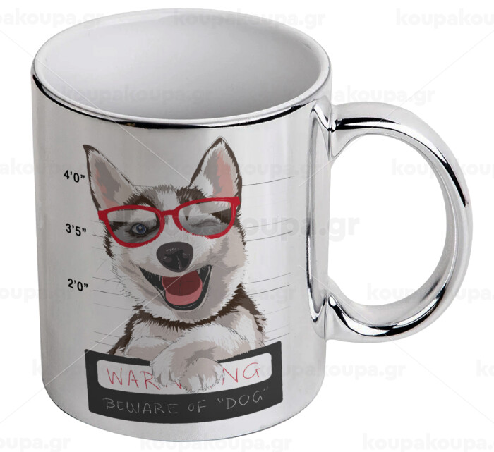 Warning, beware of Dog, Mug ceramic, silver mirror, 330ml