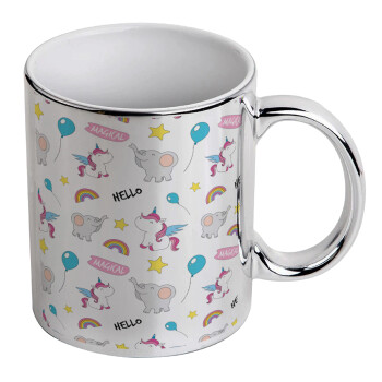 Happy Clouds Doodle, Mug ceramic, silver mirror, 330ml