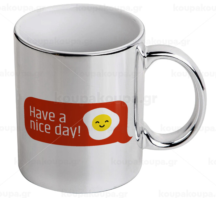 Have a nice day Emoji, Mug ceramic, silver mirror, 330ml