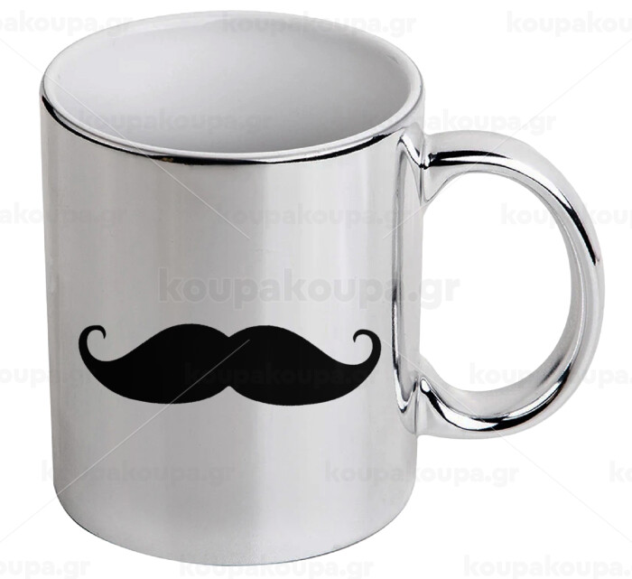 moustache, Mug ceramic, silver mirror, 330ml