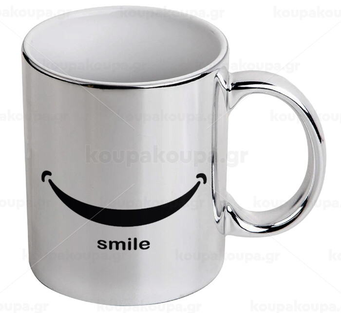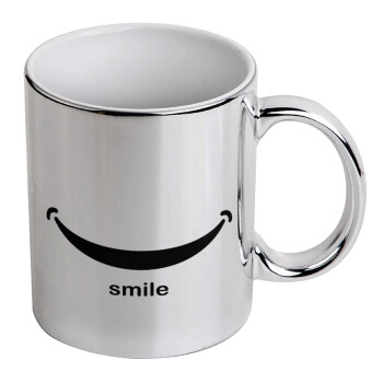 Smile!!!, Mug ceramic, silver mirror, 330ml
