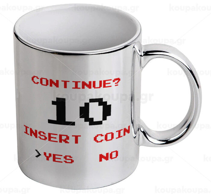 Continue? YES - NO, Mug ceramic, silver mirror, 330ml