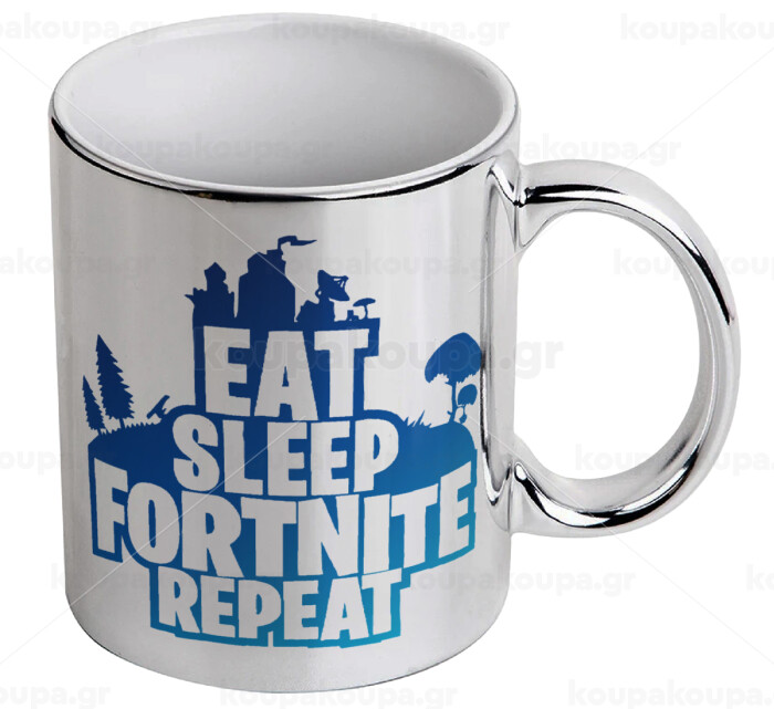 Eat Sleep Fortnite Repeat, Mug ceramic, silver mirror, 330ml
