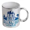 Eat Sleep Fortnite Repeat, Mug ceramic, silver mirror, 330ml