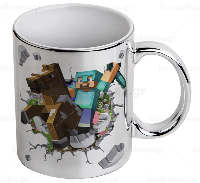 Minecraft brick, Mug ceramic, silver mirror, 330ml