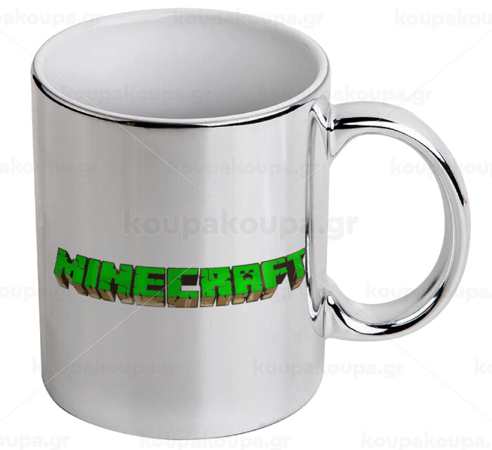 Minecraft logo green, Mug ceramic, silver mirror, 330ml
