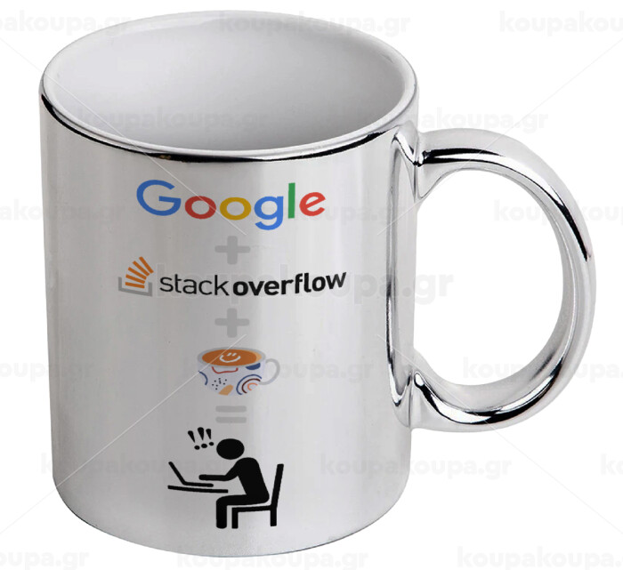 Google + Stack overflow + Coffee, Mug ceramic, silver mirror, 330ml