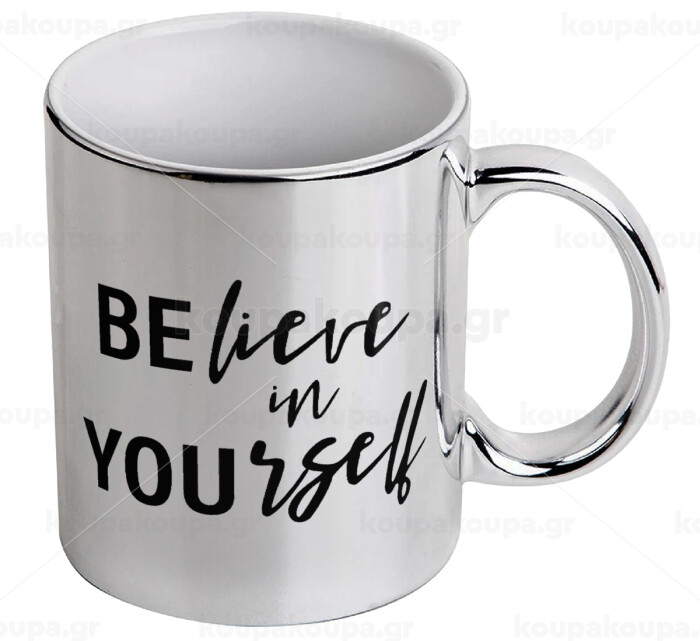 Believe in your self, Mug ceramic, silver mirror, 330ml