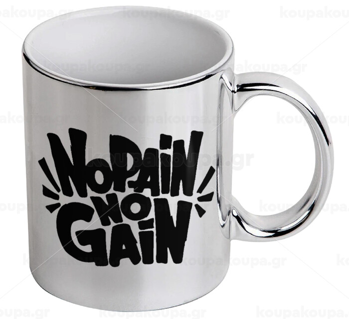 No pain no gain, Mug ceramic, silver mirror, 330ml