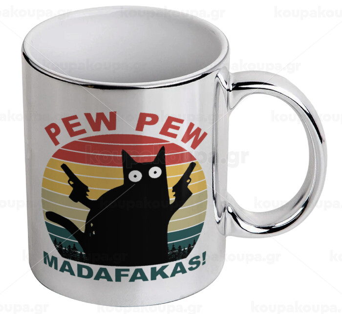 PEW PEW madafakas, Mug ceramic, silver mirror, 330ml