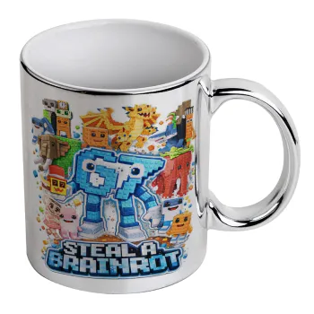 Steal a Brainrot Six Seven, Mug ceramic, silver mirror, 330ml