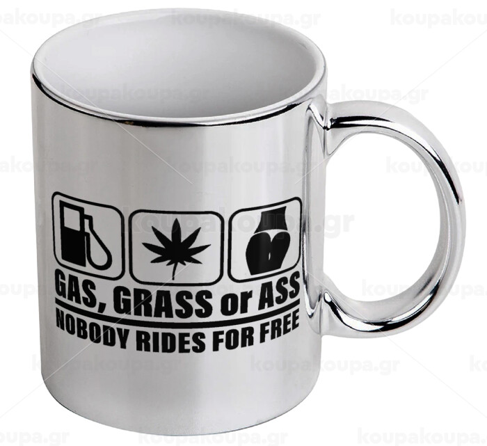 Gas, Grass or Ass, Mug ceramic, silver mirror, 330ml