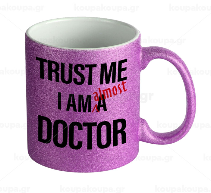 Trust me, i am (almost) Doctor, Κούπα Μωβ Glitter που γυαλίζει, κεραμική, 330ml