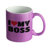 I LOVE MY BOSS, Κούπα Μωβ Glitter που γυαλίζει, κεραμική, 330ml