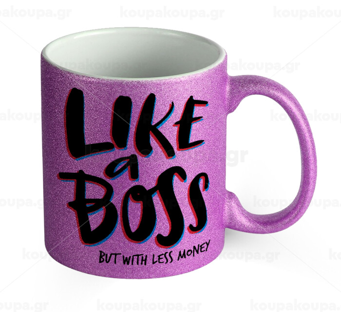 Like a boss, but with less money!!!, Κούπα Μωβ Glitter που γυαλίζει, κεραμική, 330ml