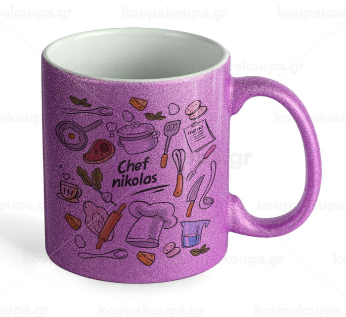 Chef με όνομα, Κούπα Μωβ Glitter που γυαλίζει, κεραμική, 330ml