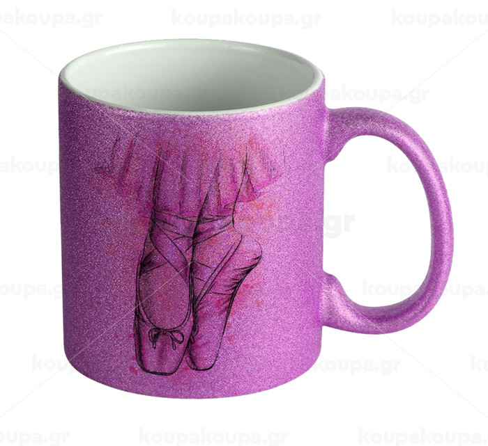 Ballerina shoes, Κούπα Μωβ Glitter που γυαλίζει, κεραμική, 330ml