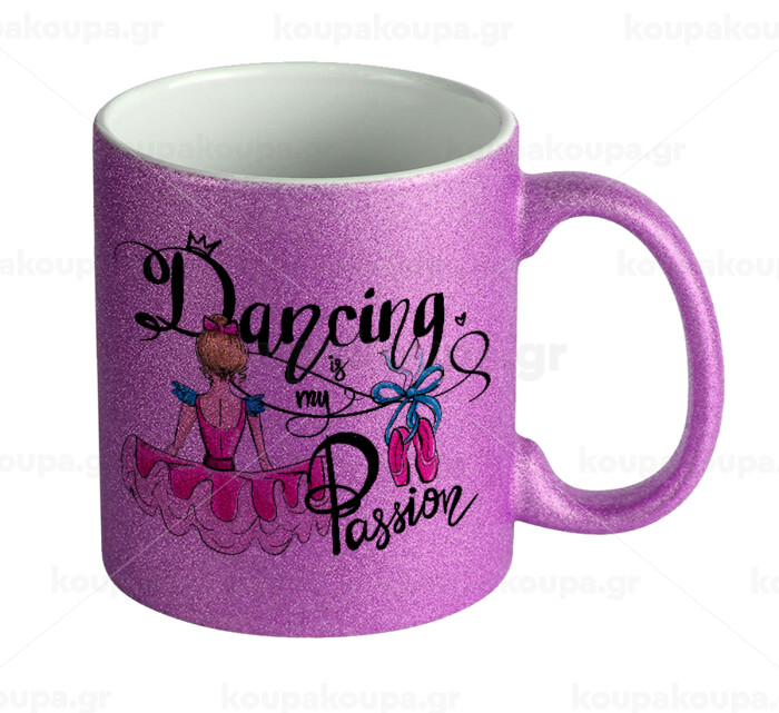 Dancing is my Passion, Κούπα Μωβ Glitter που γυαλίζει, κεραμική, 330ml