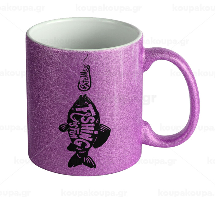 Fishing is fun, Κούπα Μωβ Glitter που γυαλίζει, κεραμική, 330ml