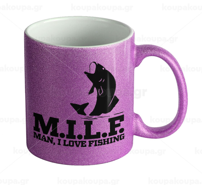 M.I.L.F. Mam i love fishing, Κούπα Μωβ Glitter που γυαλίζει, κεραμική, 330ml