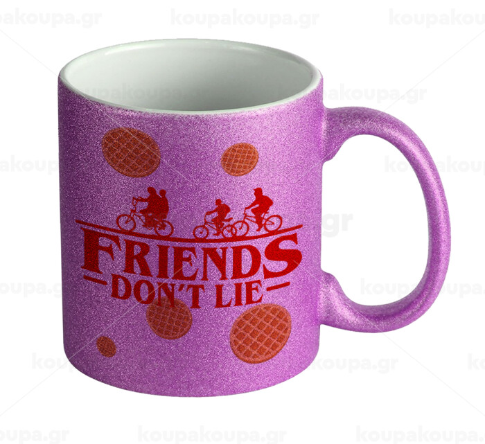 Friends Don't Lie, Stranger Things, Κούπα Μωβ Glitter που γυαλίζει, κεραμική, 330ml