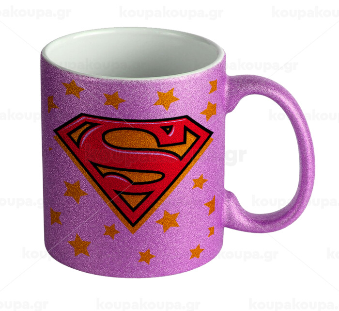 Superman Blue, Κούπα Μωβ Glitter που γυαλίζει, κεραμική, 330ml