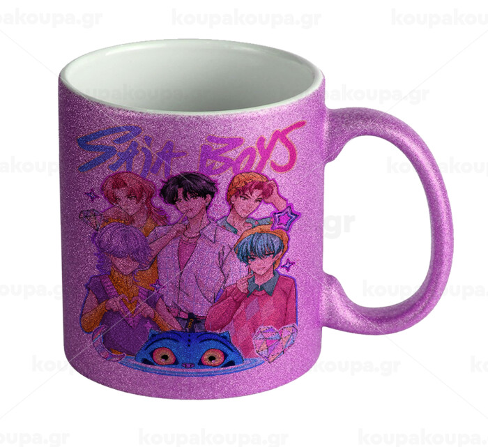 Huntrix Saja Boys, Κούπα Μωβ Glitter που γυαλίζει, κεραμική, 330ml