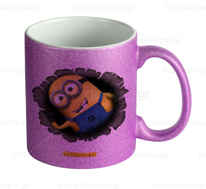 Minions hi, Κούπα Μωβ Glitter που γυαλίζει, κεραμική, 330ml