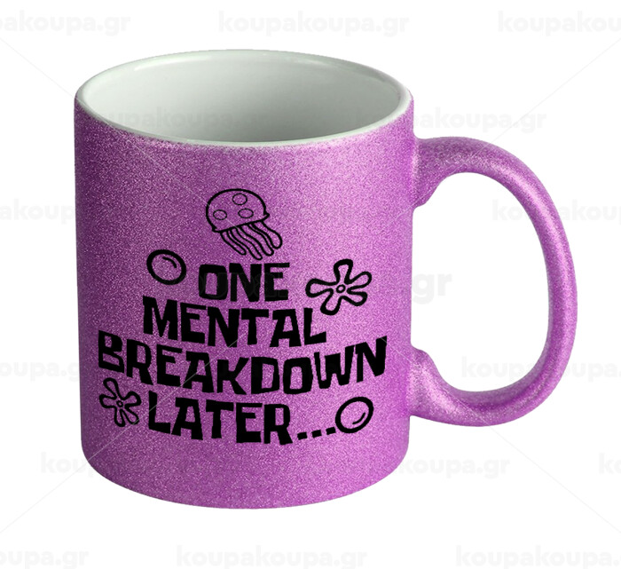 one mental breakdown later bob spongebob, Κούπα Μωβ Glitter που γυαλίζει, κεραμική, 330ml
