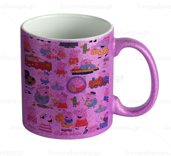 Peppa pig Characters, Κούπα Μωβ Glitter που γυαλίζει, κεραμική, 330ml