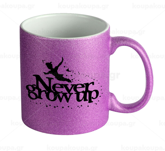 Peter pan, Never Grow UP, Κούπα Μωβ Glitter που γυαλίζει, κεραμική, 330ml