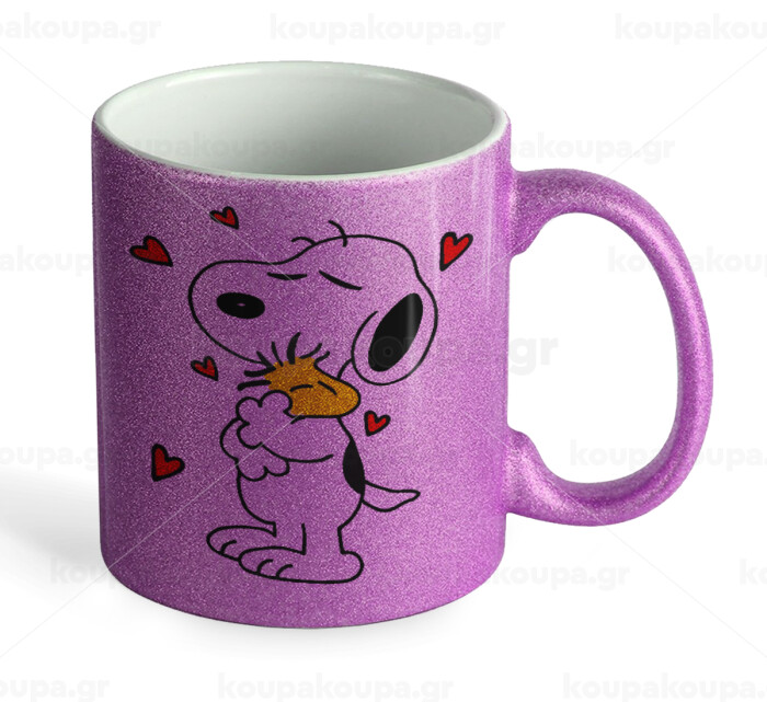 Snoopy Love, Κούπα Μωβ Glitter που γυαλίζει, κεραμική, 330ml
