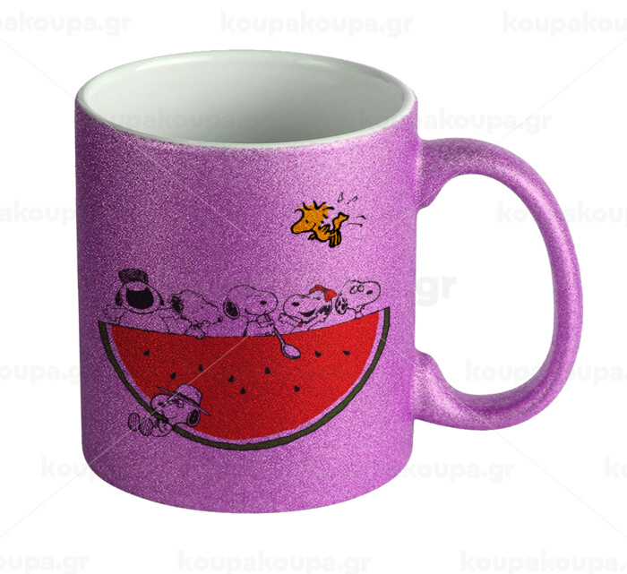 Snoopy summer, Κούπα Μωβ Glitter που γυαλίζει, κεραμική, 330ml